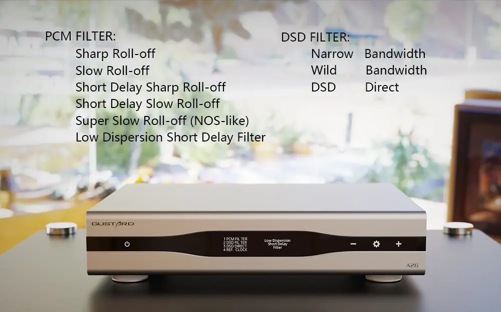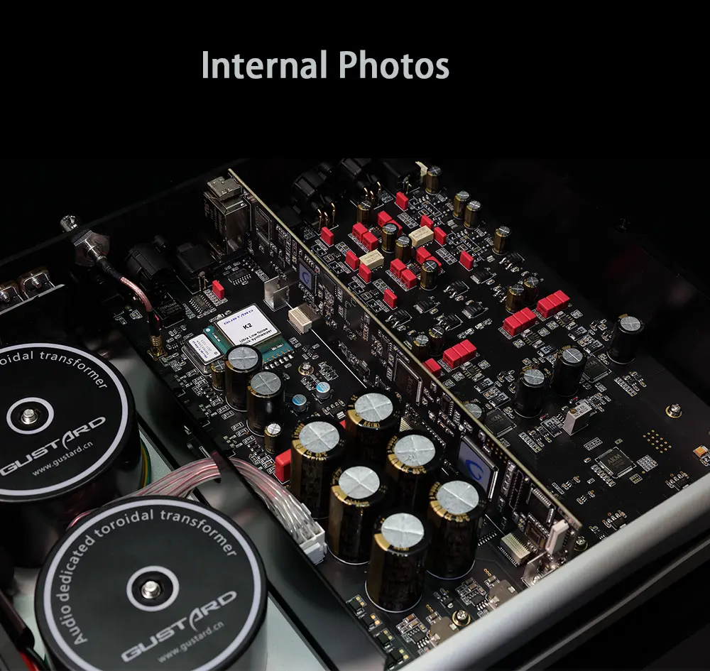 > The GUSTARD A26 DAC combines two AK4499EX DAC chips with one AK4191 modulator from Asahi Kasei Microdevices. With independent power supply and grounding for each channel, separate digital-analog architecture eliminates interferences from the beginning.