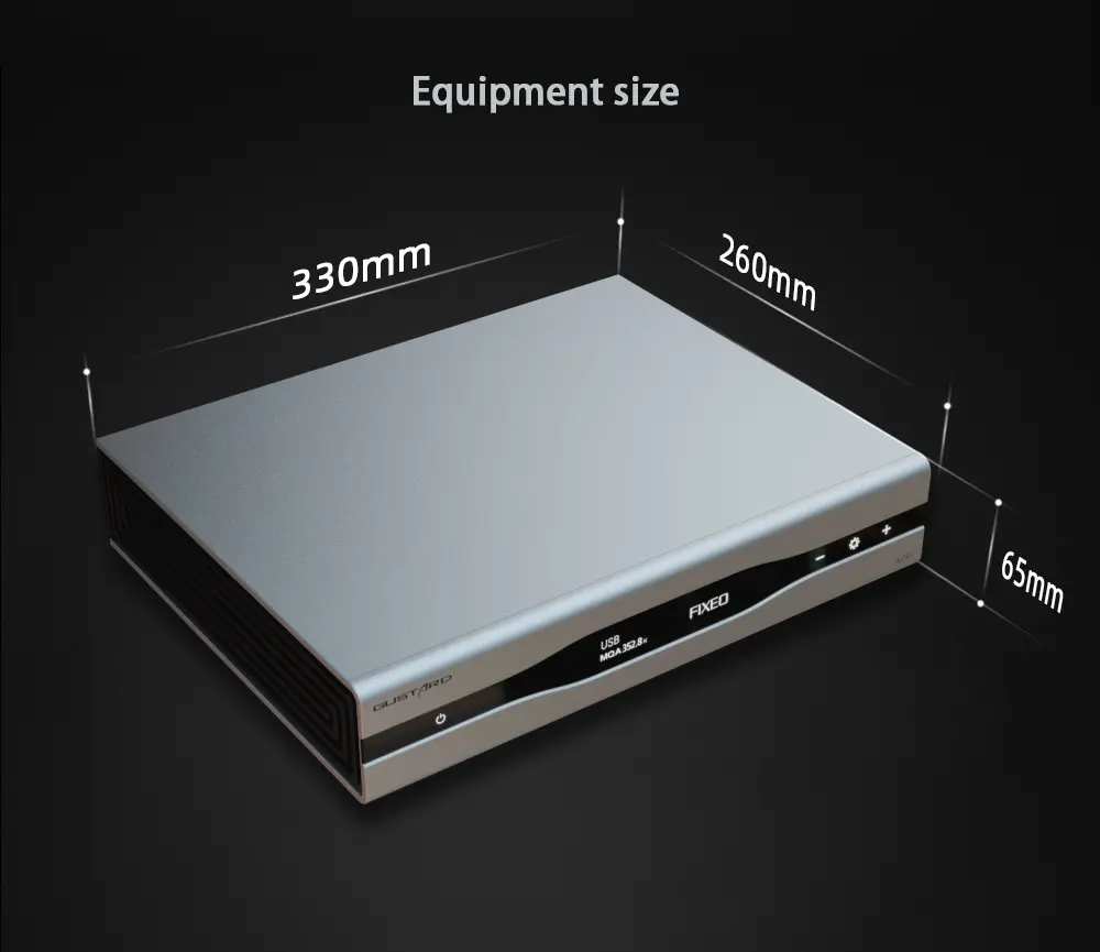 > Equipped with K2, ultra-low noise clock synthesizer, the A26 DAC features a precision clock from local oscillators or external clock in. It is worth mentioning that the GUSTARD A26 can replace the input signal' s clock with precision oscillators (local or external) and avoid the interference from the input source' s clock. In addition, the A26 DAC applies XU216 from XMOS, supporting up to PCM768 (with MQA-support) and DSD512.