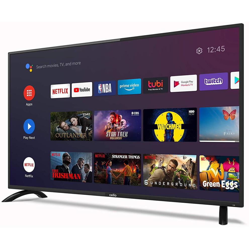 This 40″ Full HD Smart Android TV comes with the very latest Google technology and multiple viewing options so you can always find something to watch. Watching TV has never been easier, simply say ‘Ok Google' or press the mic button on the remote to quickly find the latest movies or check the football scores. Cello Android TVs include Freeview Play as standard, allowing users to access an additional 85 channels plus 20,000 hours of on demand content, for no extra cost. With Google Play Store built in there is an app for everyone. Download all of your favourites from Netflix and Disney + to Youtube and catch up apps like BBC iPlayer. As well as all of those viewing options, using your Android device you can cast photos, videos, music and other content from your mobile device straight to the TV using Chromecast technology.