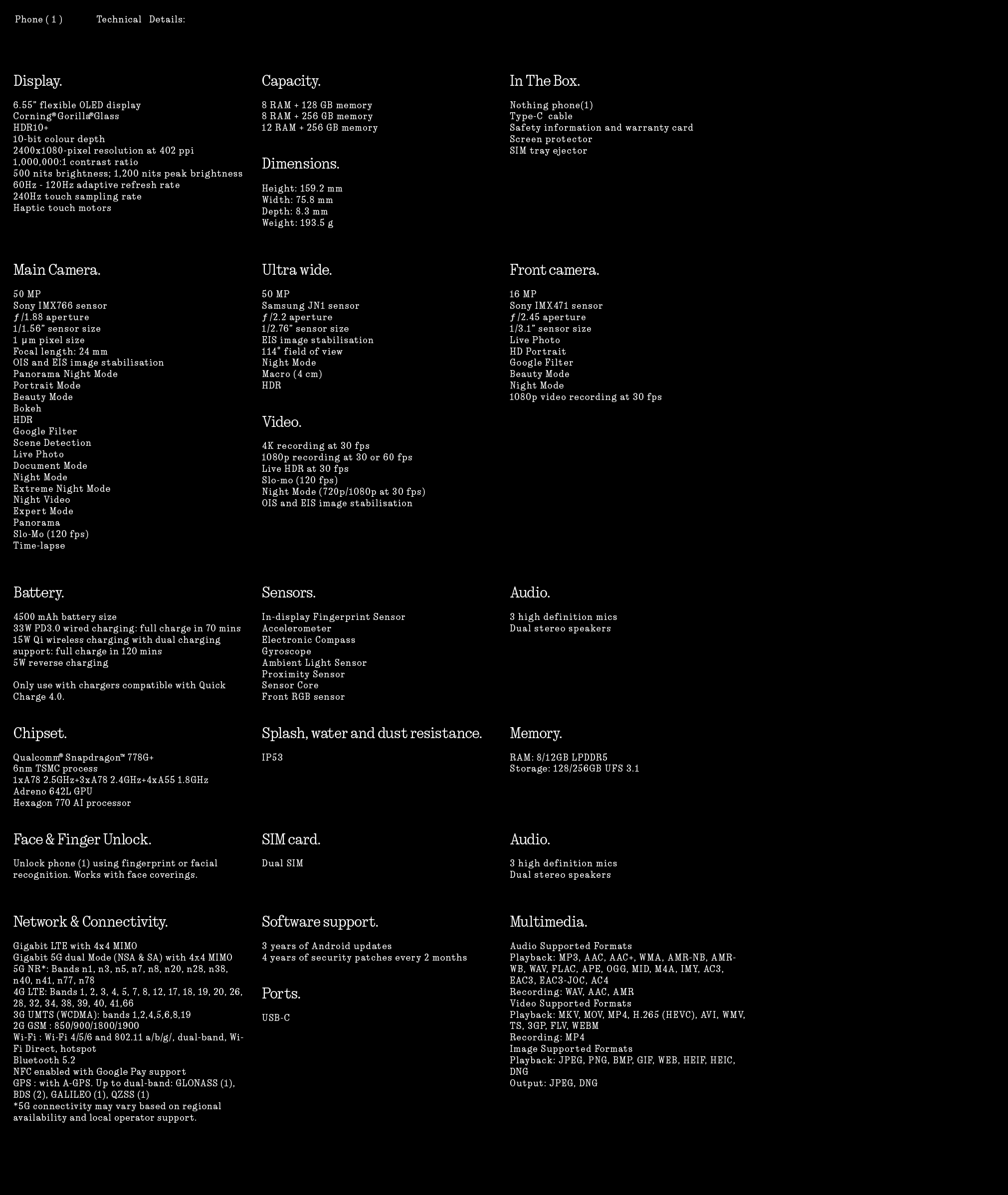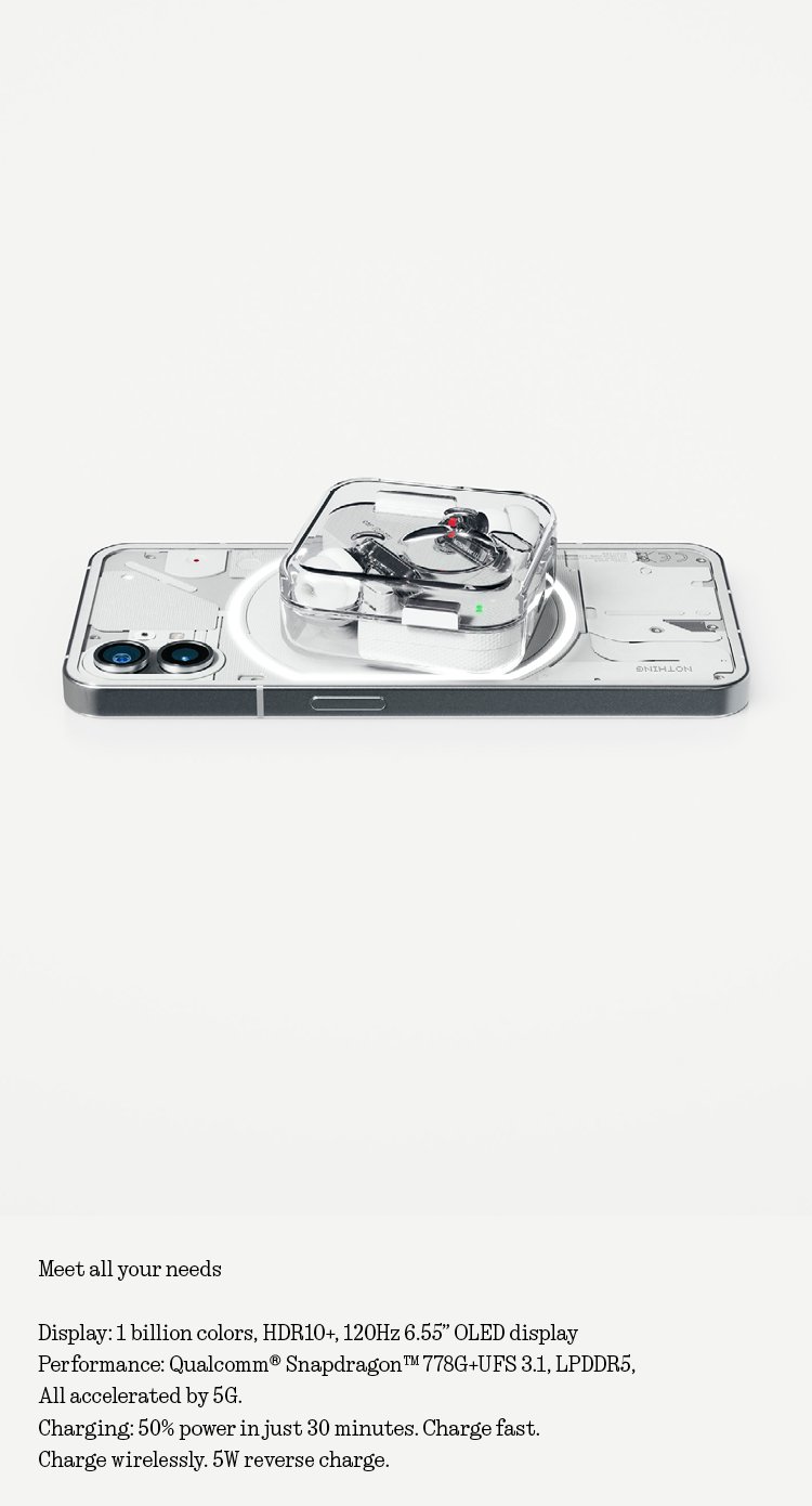 无物手机(1)|8GB+128GB/8GB+256GB/12GB+256GB |字形接口|50MP双摄像头|纯无物操作系统|Snapdragon 778G+