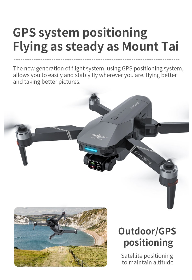 Item No: KF101 MAX Color :Dark Grey Frequency :2.4G (Remote Control) & 5G (Mobile Phone) Drone Battery :11.1V 2500mAh Control Distance : 3KM For KF101 MAX Wifi Image Transmission Distance : 3KM Flight Time : About 25 min Charging Time : About 6 hours USB Charging : 5V/2A Drone Weight : 613g (Needs drone registration in Singapore) Remote Control Battery : 3.7V 1000mAh Transmitter Charging Time : About 60min Transmitter Operating Time : About 10 hours Camera : 3 -Axis Electronic Stabilization Gimbal EIS electronic image stabilization Camera Camera Lens : 120° Photo Resolution (APP) : 3840*2160 P Video Resolution (APP) : 1280*720 P Photo Resolution (SD Card) : 2560*1440 P Video Resolution (SD Card) : 2560*1440 P Frame Rate : 30fps Photo Format : JPG Video Format : MP4 or AVI Adjustable Angle :90° Gesture Shooting : 1-3 M GPS Follow Me : 30 M+ SD Card Supports 32G-128G(Not Included) Mobile Device System Version : iOS 8.0 or later / Android 4.4.4 or later